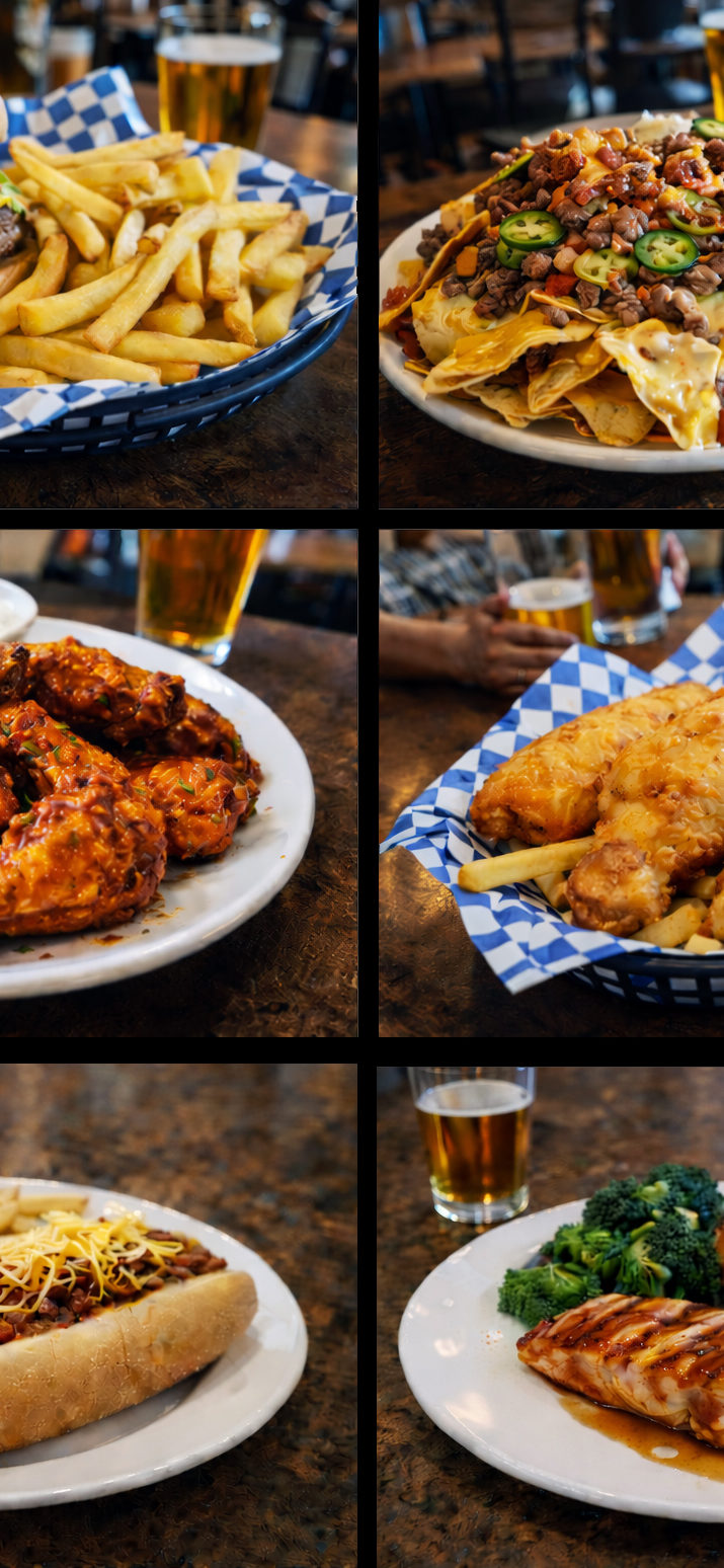 Our menu features hearty pub favorites—from mouthwatering burgers and sandwiches to fresh salads and signature wings—served up with generous portions and Southern charm. Behind the bar, you’ll find a wide selection of beers, spirits, and cocktails to satisfy every taste.